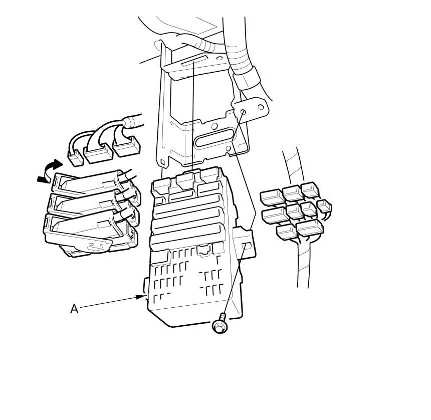 3. Disconnect the connectors from the fuse side of the under-dash fuse/relay box (A).