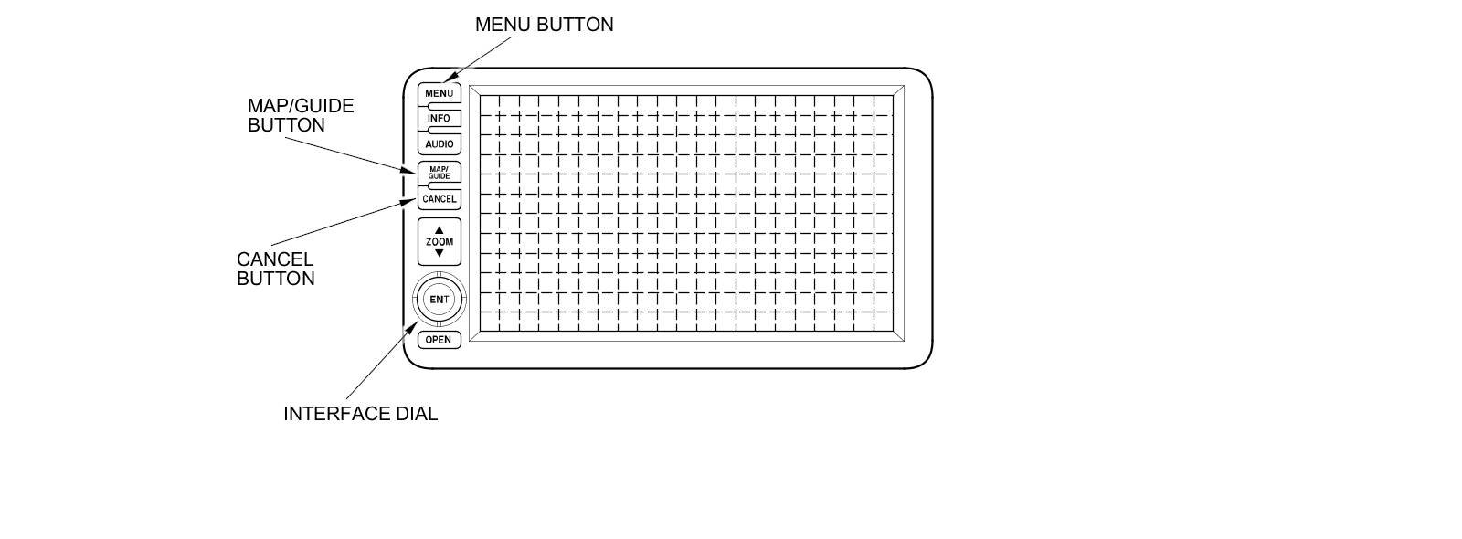 - Simultaneously pressing and holding the MENU, MAP/GUIDE, and CANCEL buttons.