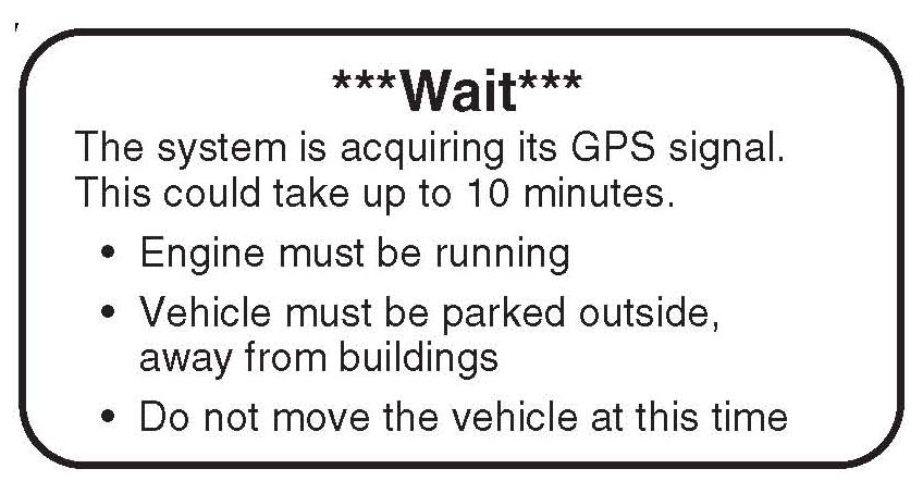 4. The instructions below appear on the screen to indicate that the system is initializing (determining its location from the GPS satellites). Follow the on-screen instructions.