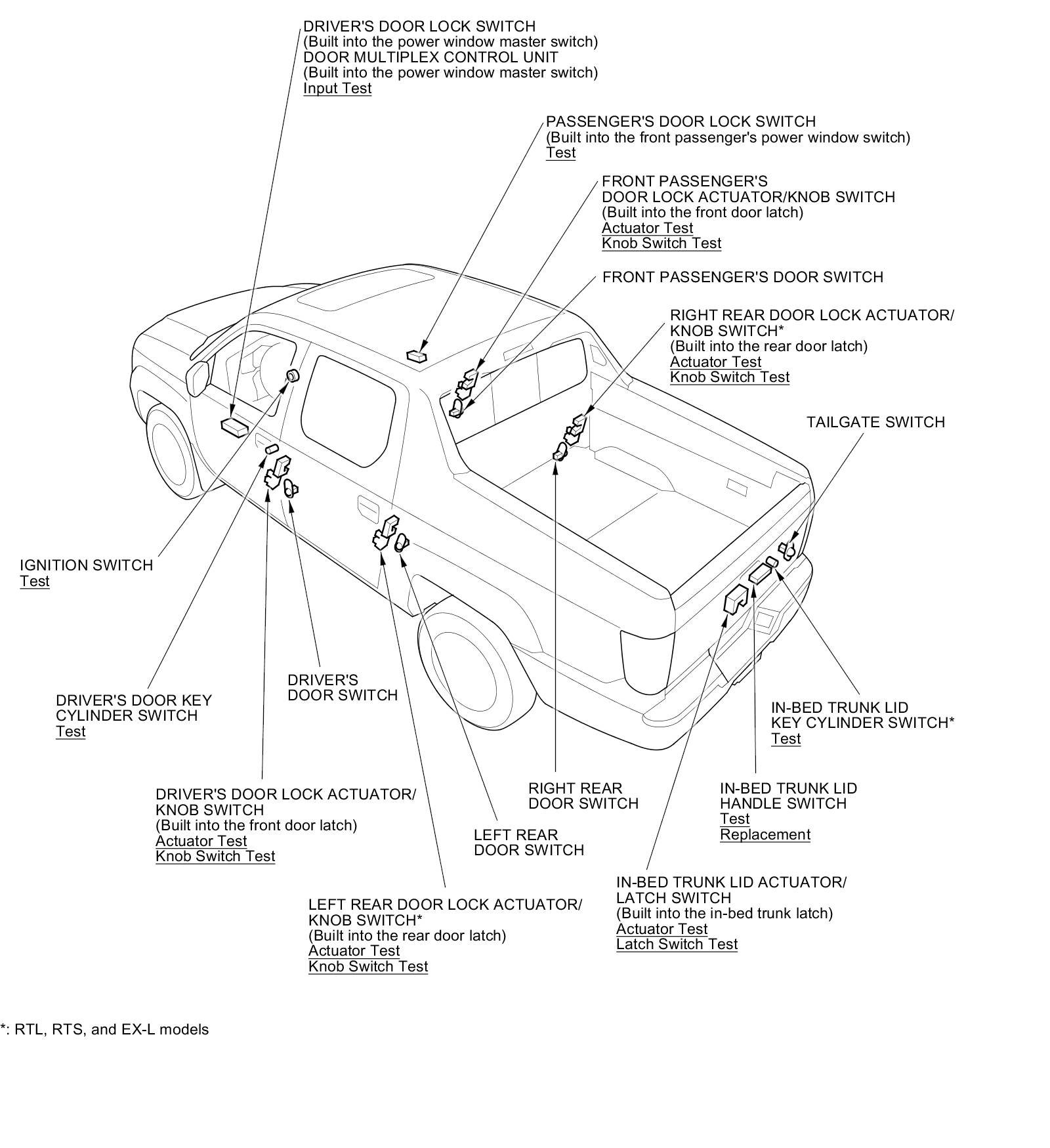 Keyless/Power Door Locks/Security System Component Location Index