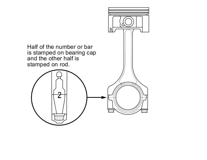 Numbers or bars have been stamped on the side of each connecting rod as a code for the size of the big end. Use them, and the letters or bars stamped on the crank (codes for rod journal size), to choose the correct bearings. If the codes are indecipherable because of an accumulation of dirt and dust, do not scrub them with a wire brush or scraper. Clean them only with solvent or detergent.