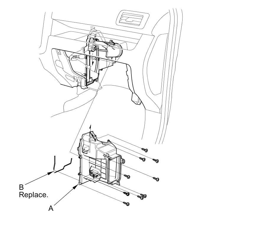 6. Carefully pull out the evaporator core (A) and the plate (B).