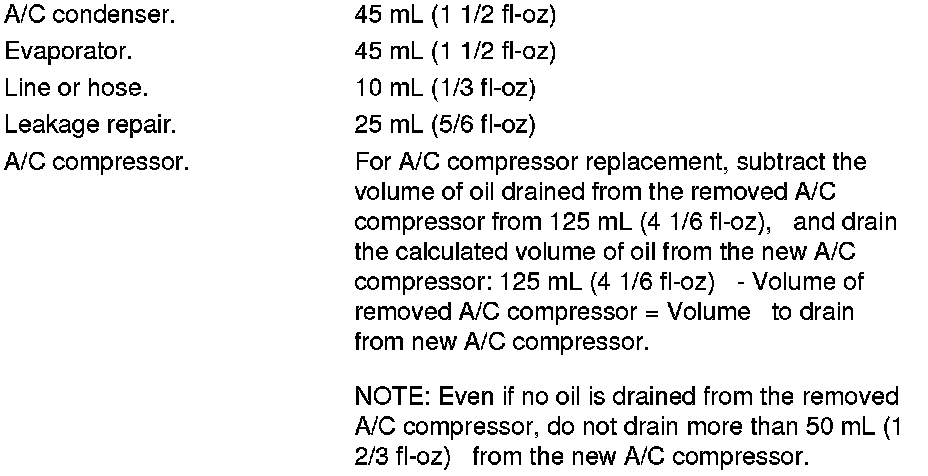 Add the recommended refrigerant oil in the amount listed if you replace any of the following parts: