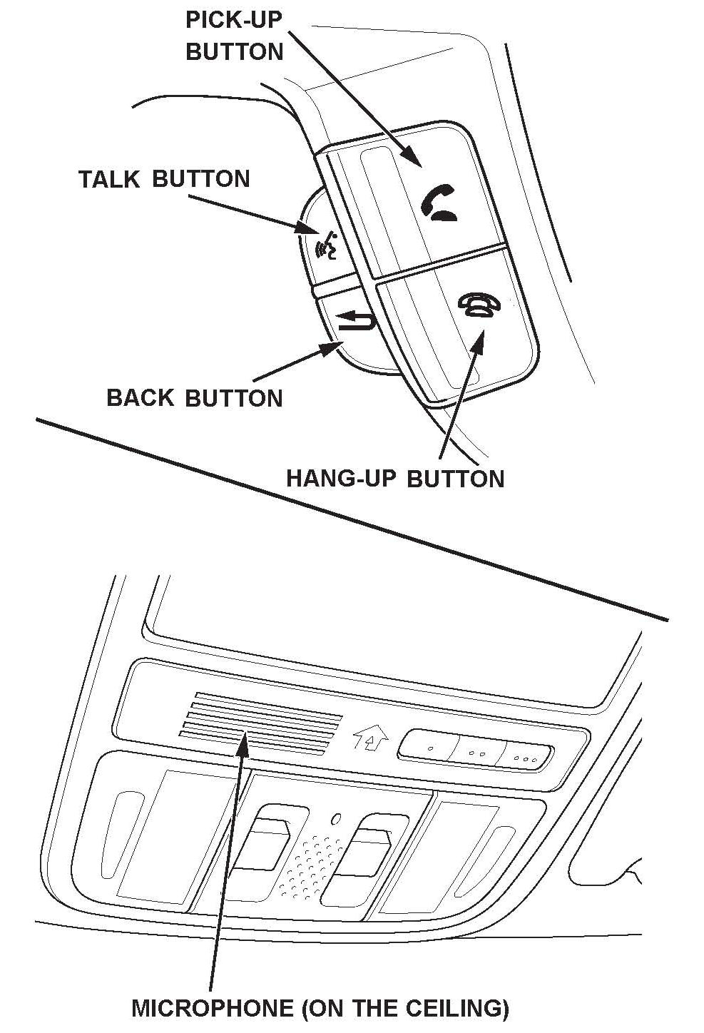 TALK button - Press and release this button on the steering wheel to activate the voice control system. After pressing and releasing the TALK button, wait for the beep, and then speak the command.