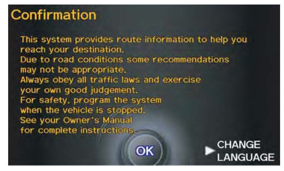 The navigation system is basically ready to use when the vehicle is delivered to the dealership. Since the system interfaces with other vehicle systems, it is important that all of the systems are initialized. To initialize the navigation system, follow these steps: