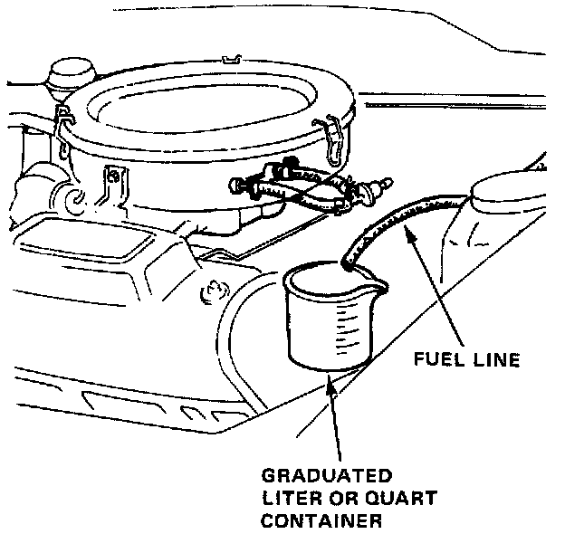 5. Turn ignition ON, measure amount of full flow for 60 seconds, then turn ignition OFF. Fuel flow should be more than 450cc (15 oz.) in 60 seconds with battery voltage at 10 volts minimum.