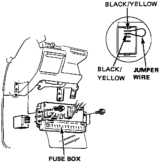1. Connect a jumper wire between the two black/yellow wires at the fuel pump cutoff relay connector.