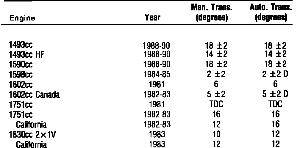 Ignition Timing: Specifications