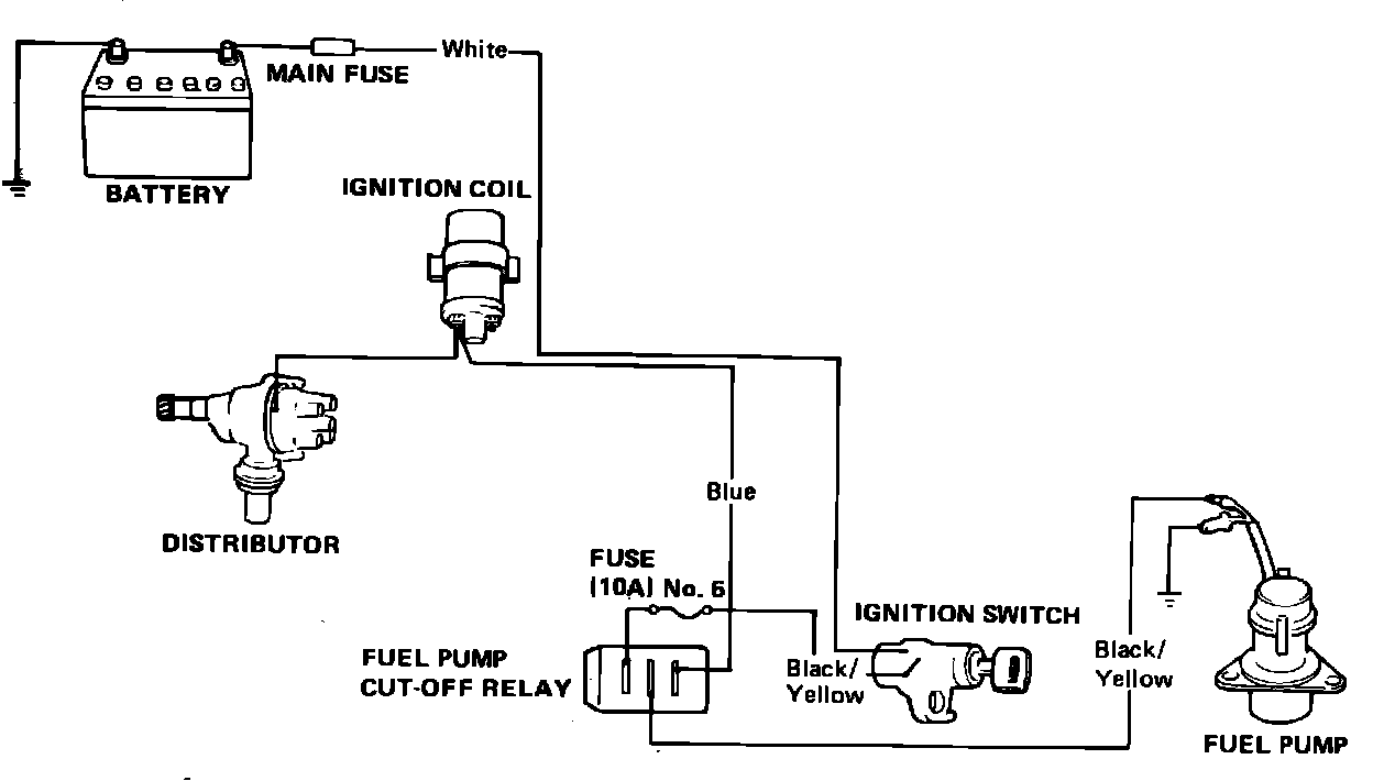 Fig. 39 Fuel Pump Cut-Off Relay Wiring Circuit. 1983 Civic: