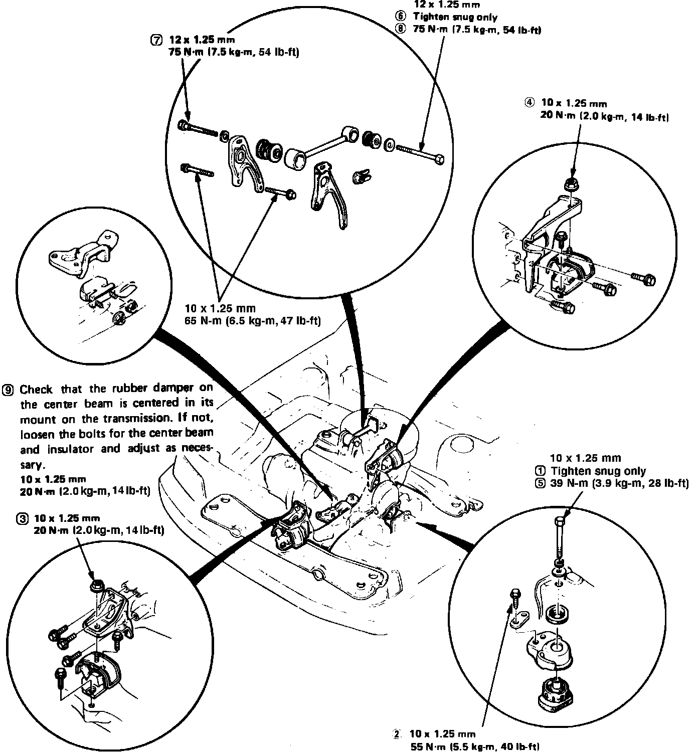 Fig. 5 Engine mount tightening sequence. 1984-85 Accord: