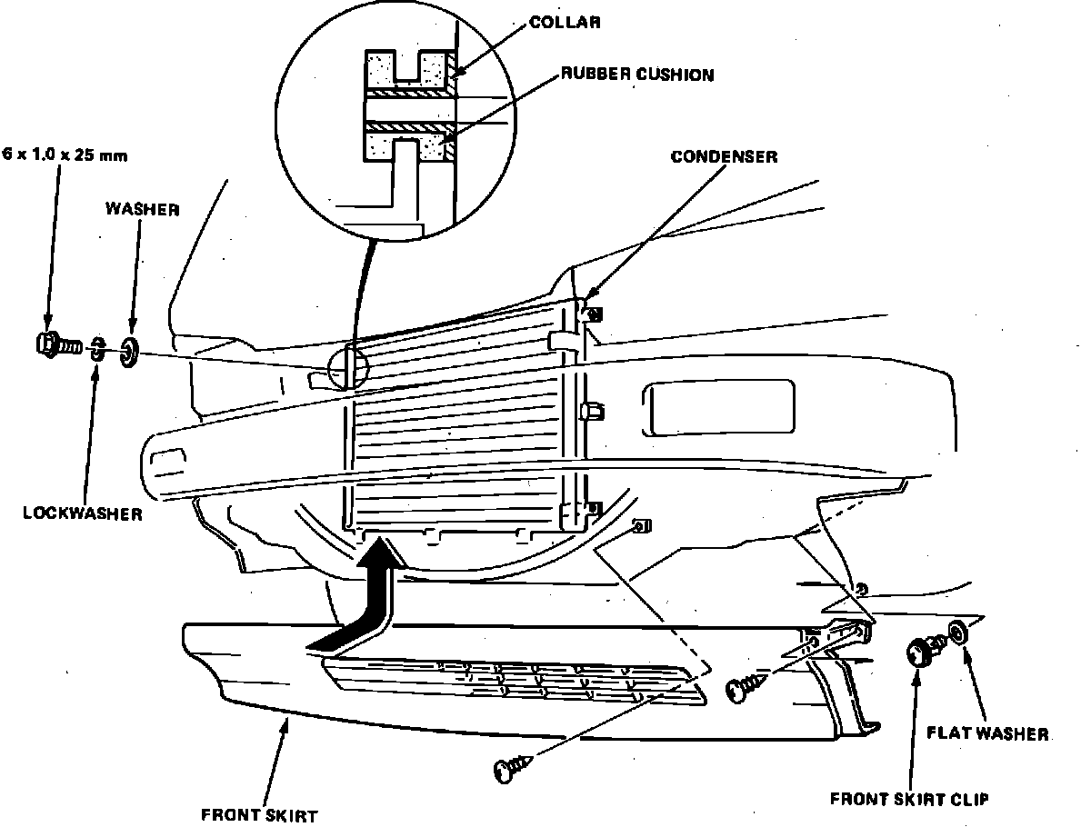 5. Remove condenser mount bolts, then let condenser down from under vehicle.