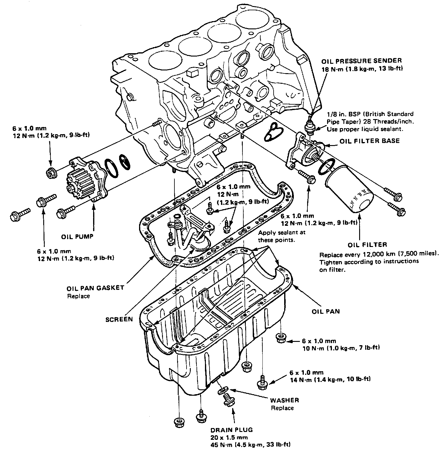 Water Pump, Oil Pan, Drain Plug, O/F Base And Oil Pressure Sender: