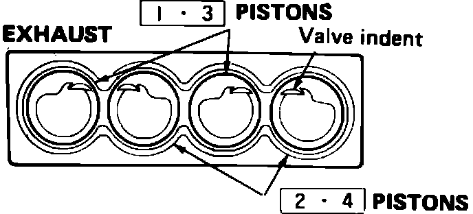 On 1984-87 Civic and CRX, assemble pistons onto connecting rods with valve depressions on opposite side from connecting rod oil hole, Fig. 31. Also note that pistons must be properly matched with connecting rods so that in installed position valve depressions face as shown in Fig. 32, and connecting rod oil holes face intake manifold side of engine.