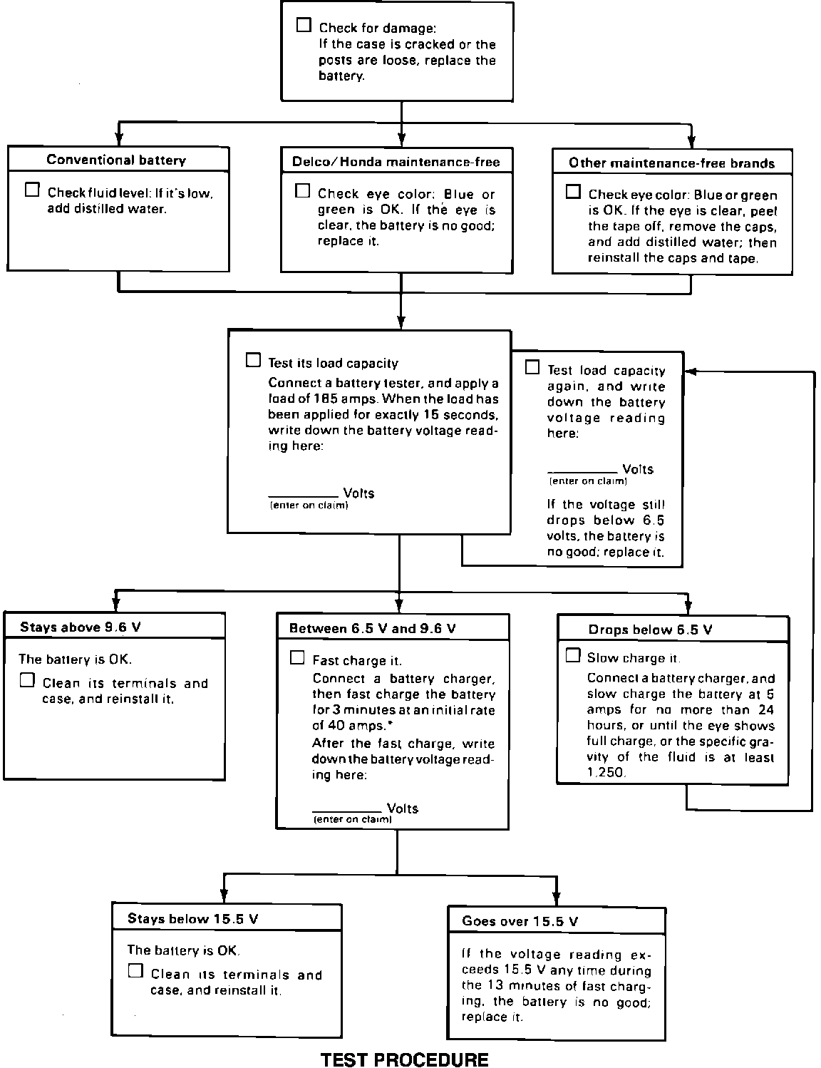 American Honda will process claims for battery replacement under warranty only if the battery fails the test procedure described on the back page of this bulletin.