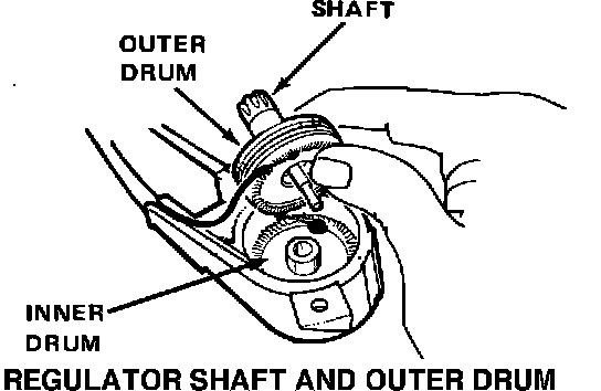 4. Replace the regulator shaft and outer drum with the improved parts. Lubricate the drum before installation with Honda White Lithium Grease (H/C 1385780).
