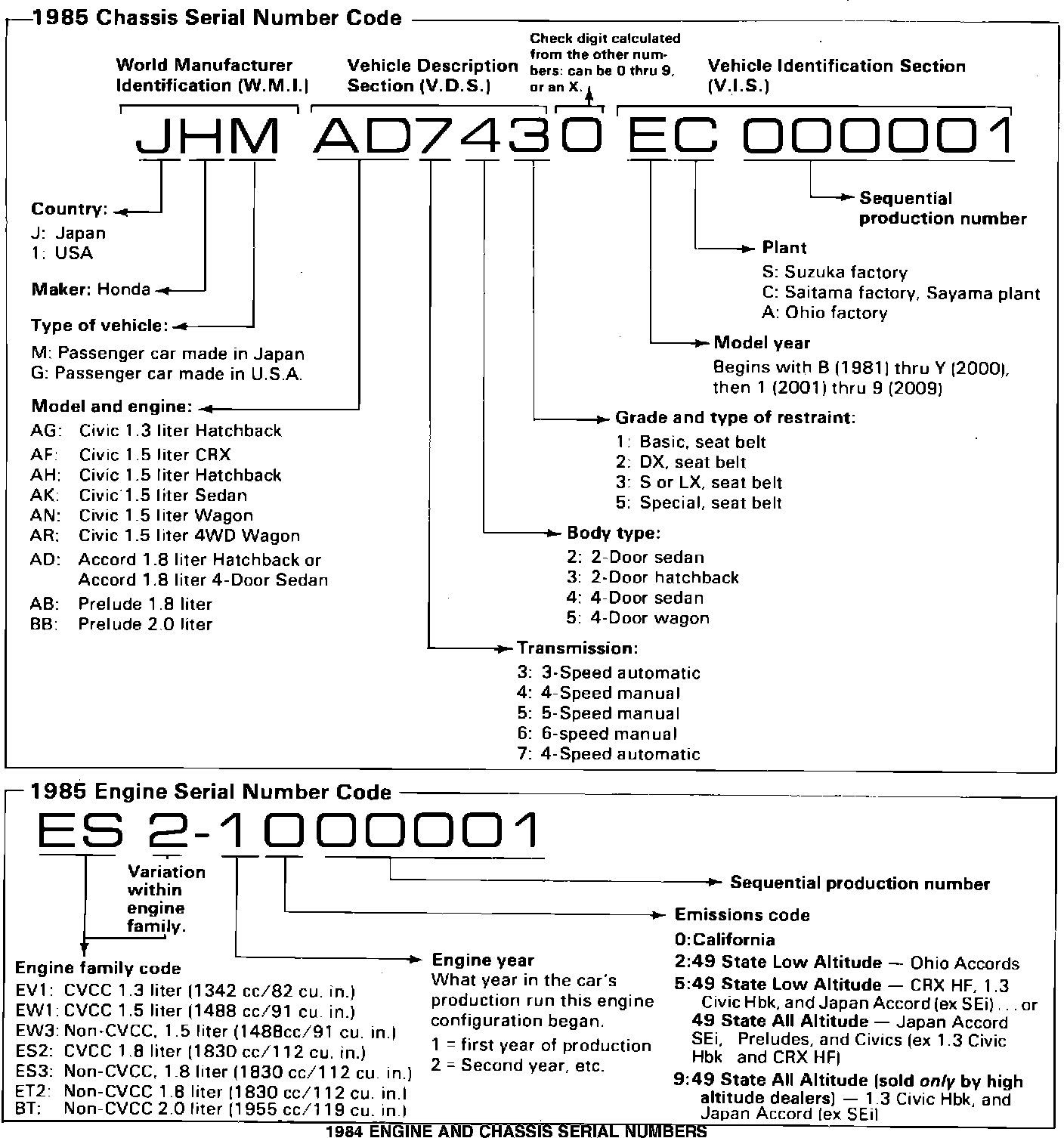1985 Engine and Chassis Serial Numbers