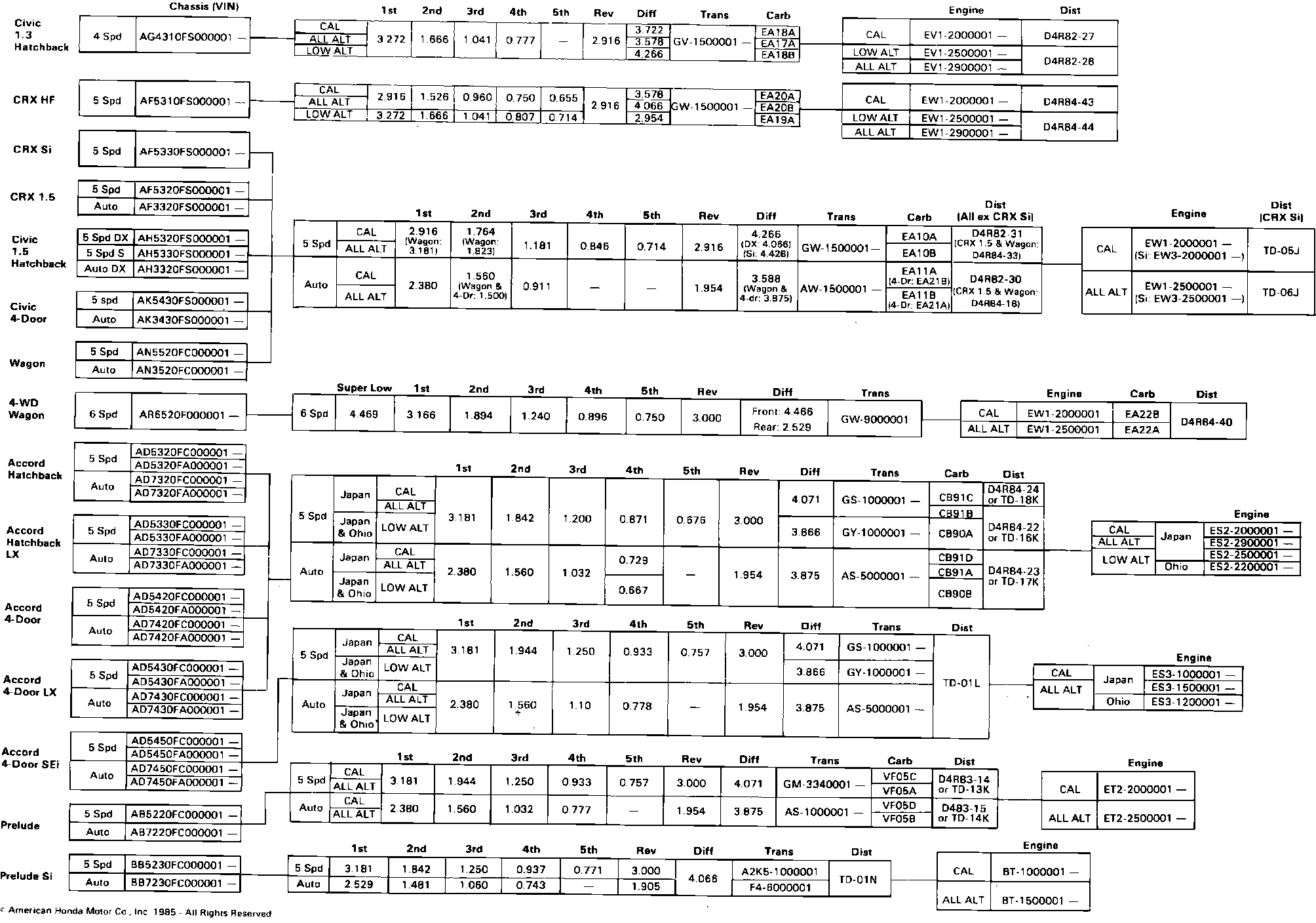 1985 Engine and Chassis Serial Numbers: