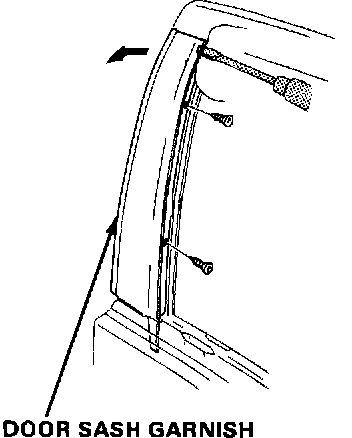3. Remove the two door sash garnish screws that were under the glass run channel. Remove the garnish by prying up as shown, starting at the top.