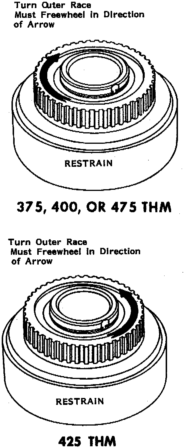 1. Sprags that hold a given planetary gear (Sun, ring, or planetary carrier) stationary to the case will freewheel in third gear.