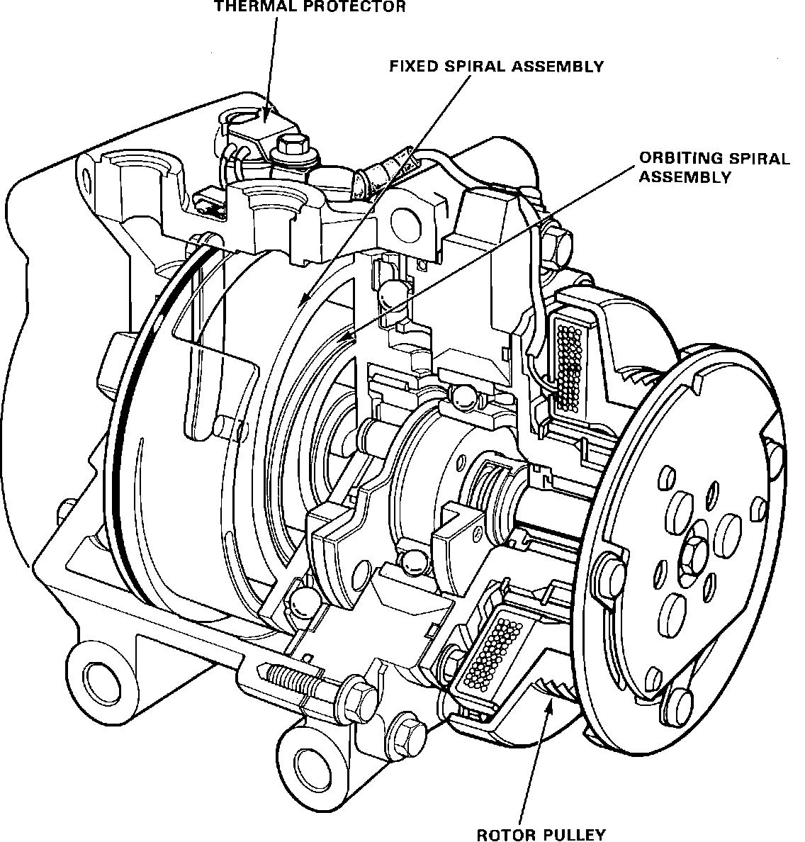 Fig. 8 Cutaway view of Sanden spiral type compressor:
