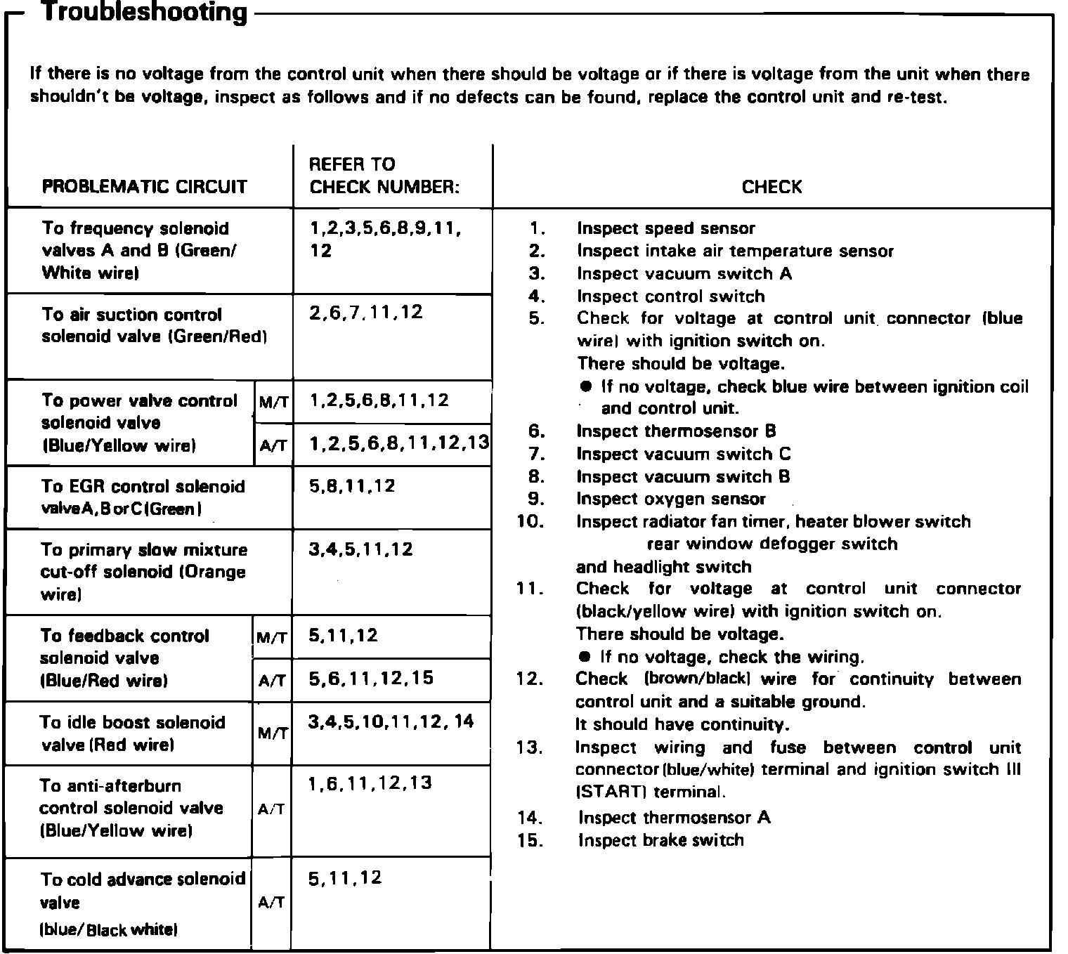 Fig. 56 Control Unit Troubleshooting Chart.: