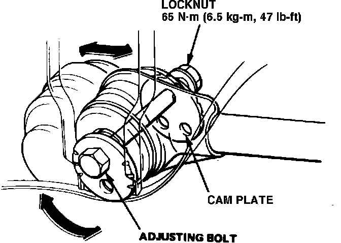 2. Loosen locknut in rear radius arm pivot bolt, then turn adjusting bolt, Fig. 5, until toe-in is within specifications.