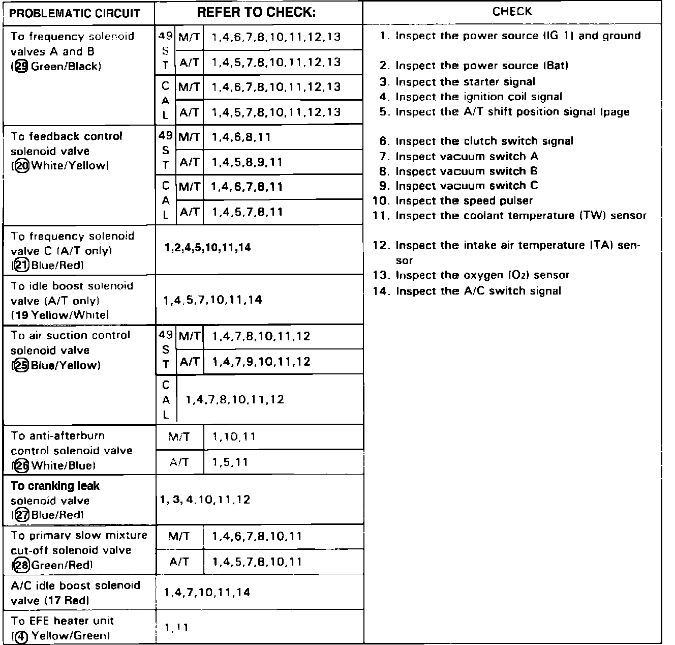 Fig. 29 Control Unit Input Troubleshooting Chart.: