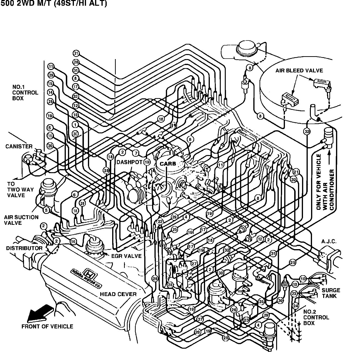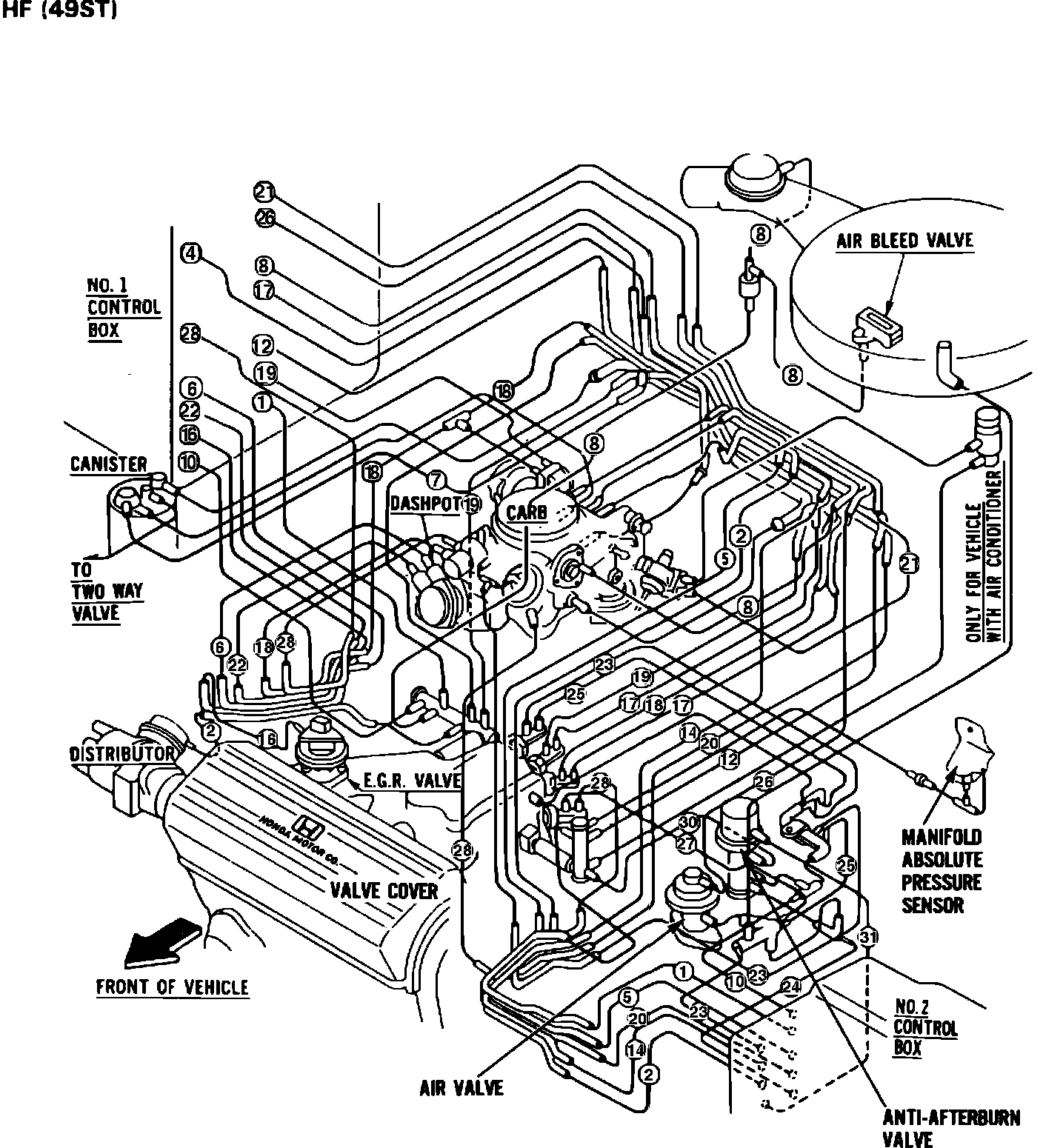 Fig. 38 Engine Compartment Reference Diagram W/CARB And MT Exc Ca: