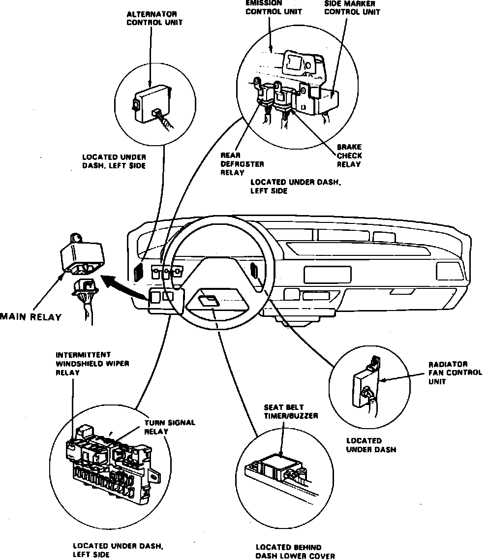 Main Relay (Computer/Fuel System): Locations