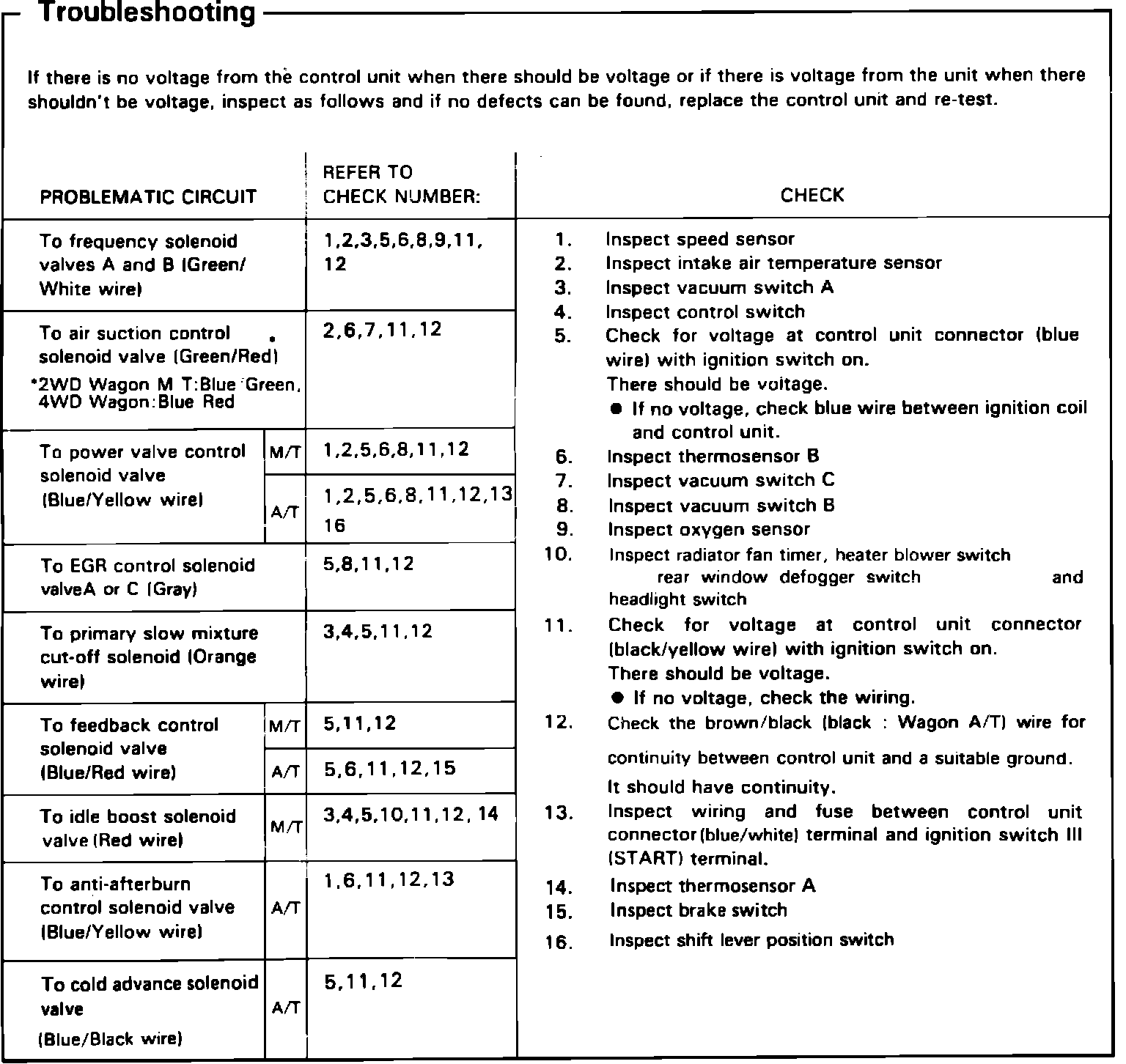 Fig. 58 Control Unit Troubleshooting Chart.: