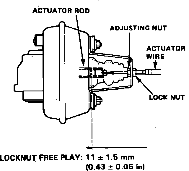2. If actuator rod movement is not within limits, by loosen lock nut and turn adjusting nut until specified travel is obtained.