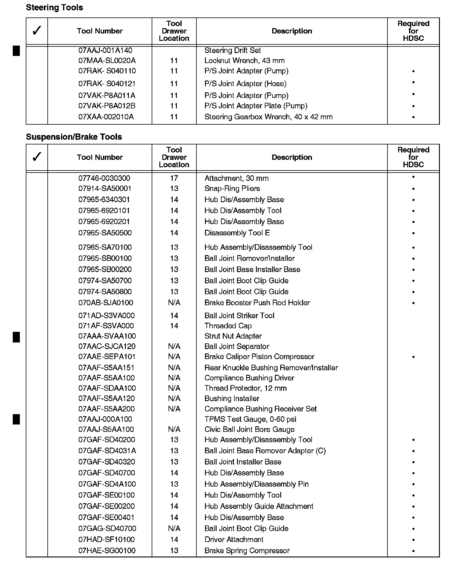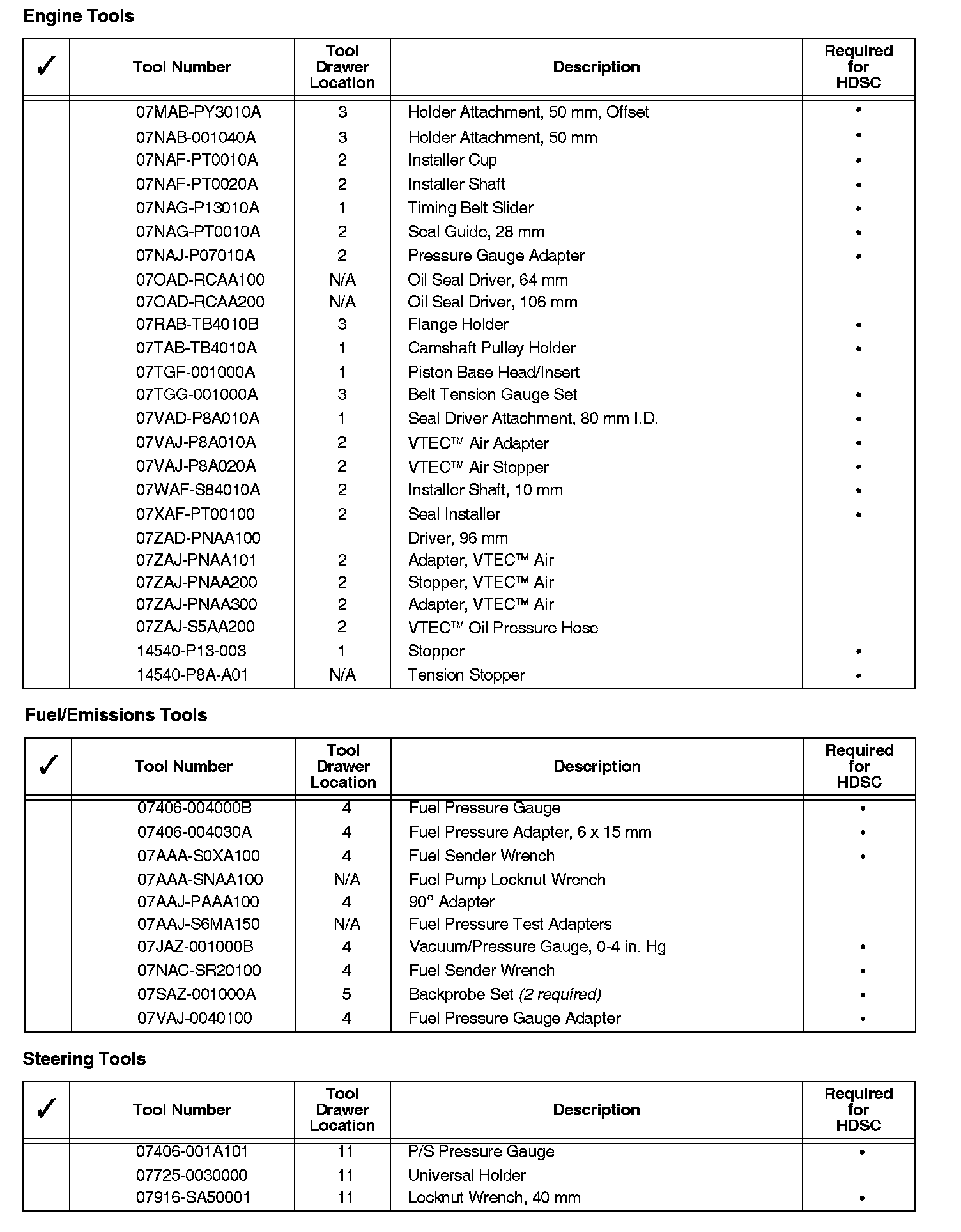 When a new model is introduced and requires service tools, those tools may be shipped to you automatically. If you receive a required service tool and believe you have an equivalent, refer to the Honda Service Operations Manual, Section 11, for the procedure to return items.