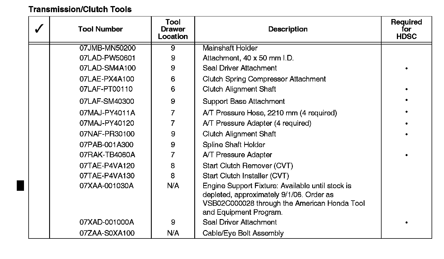 When a new model is introduced and requires special tools, those tools may be shipped to you automatically. If you receive a required special tool and believe you have an equivalent, refer to the Honda Service Operations Manual, Section 11, for the procedure to return items that have been distributed through the American Honda Tool and Equipment Program.