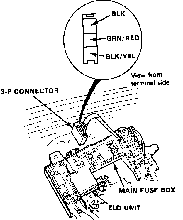b. Check for open circuit in wiring (black/yellow wire) between instrument panel fuse box and main fuse panel in engine compartment.