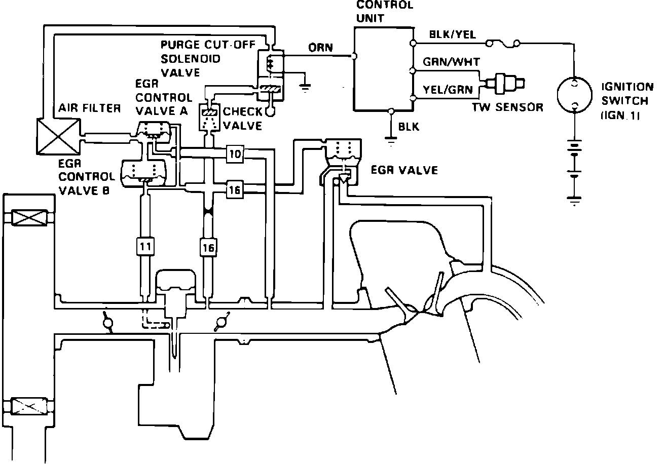 The EGR system, Figs. 62 and 63, is designed to control oxides of nitrogen emissions by recirculating a part of the exhaust gas into the intake manifold through the EGR valve mounted on the intake manifold.