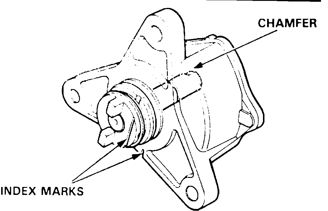 8. Install coupling with index mark facing as shown, Fig. 43, then install pin and the pin retainer.