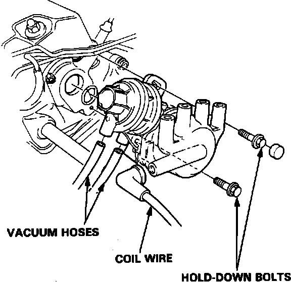 2. Disconnect the secondary wires, and vacuum hoses from the distributor.