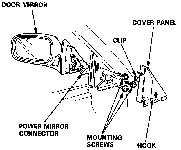 Power Door Mirror Replacement1. Pry the cover panel out with a flat tip screwdriver, then remove it. Disconnect the power mirror connector.