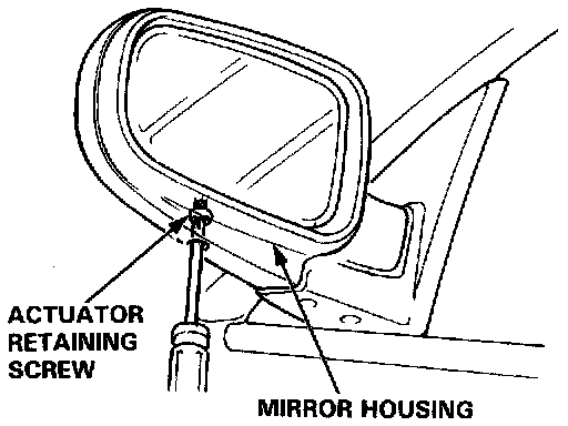 1. Insert a screwdriver in the mirror housing through the service hole, then loosen the actuator retaining screw.