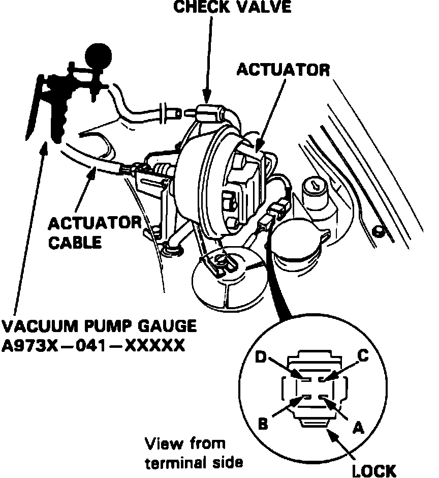 5. Actuator rod should pull in completely. If rod pulls in only part way or not at all, check for leaking vacuum line or defective solenoid.