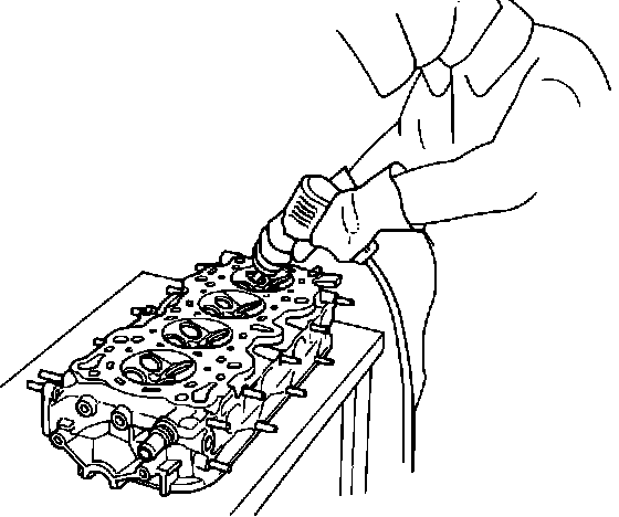 5. Check clearance with a valve. Verify that the valve slides in the intake and exhaust valve guides without exerting pressure.