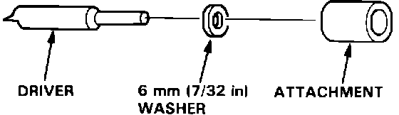 7. Slip a 6 mm (7/32 in) steel washer and the correct driver attachment over the end of the driver (The washer will absorb some of the impact and extend the life of the driver).