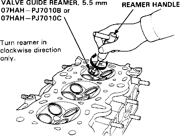 2. Rotate the reamer clockwise the full length of the valve guide bore.