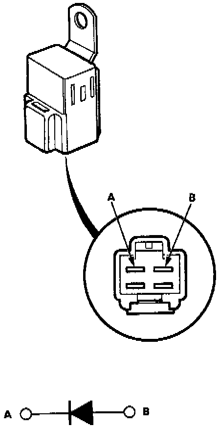 NOTE: The diodes are designed to pass current in one direction and block current in opposite direction. Most ohmmeters, unless equipped with a diode tester, should not be used to test diodes.