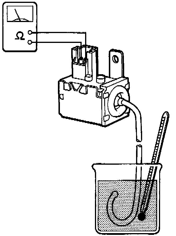 1. Dip the A/C thermostat into a cup filled with ice water, and check for continuity between the terminals.