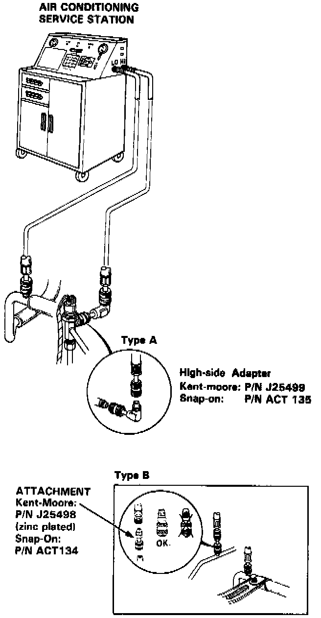 CAUTION: Use only a R-12 refrigerant Air Conditioning Service Station.