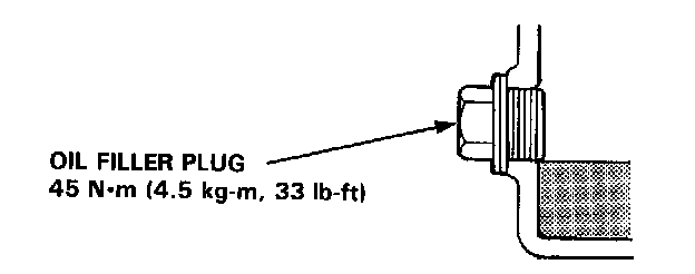 3. Oil level must be up to fill hole. If it is below hole, add oil until it runs out, then reinstall plug.