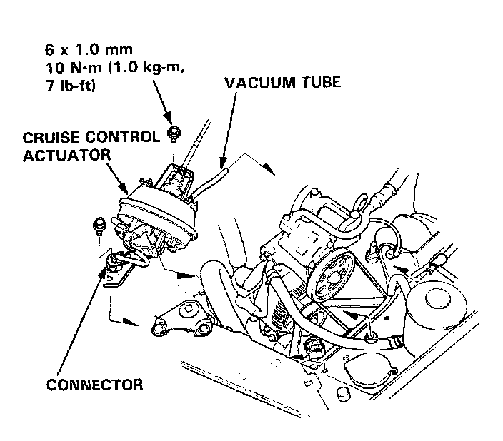 2. Disconnect the connector, then remove the cruise control actuator.