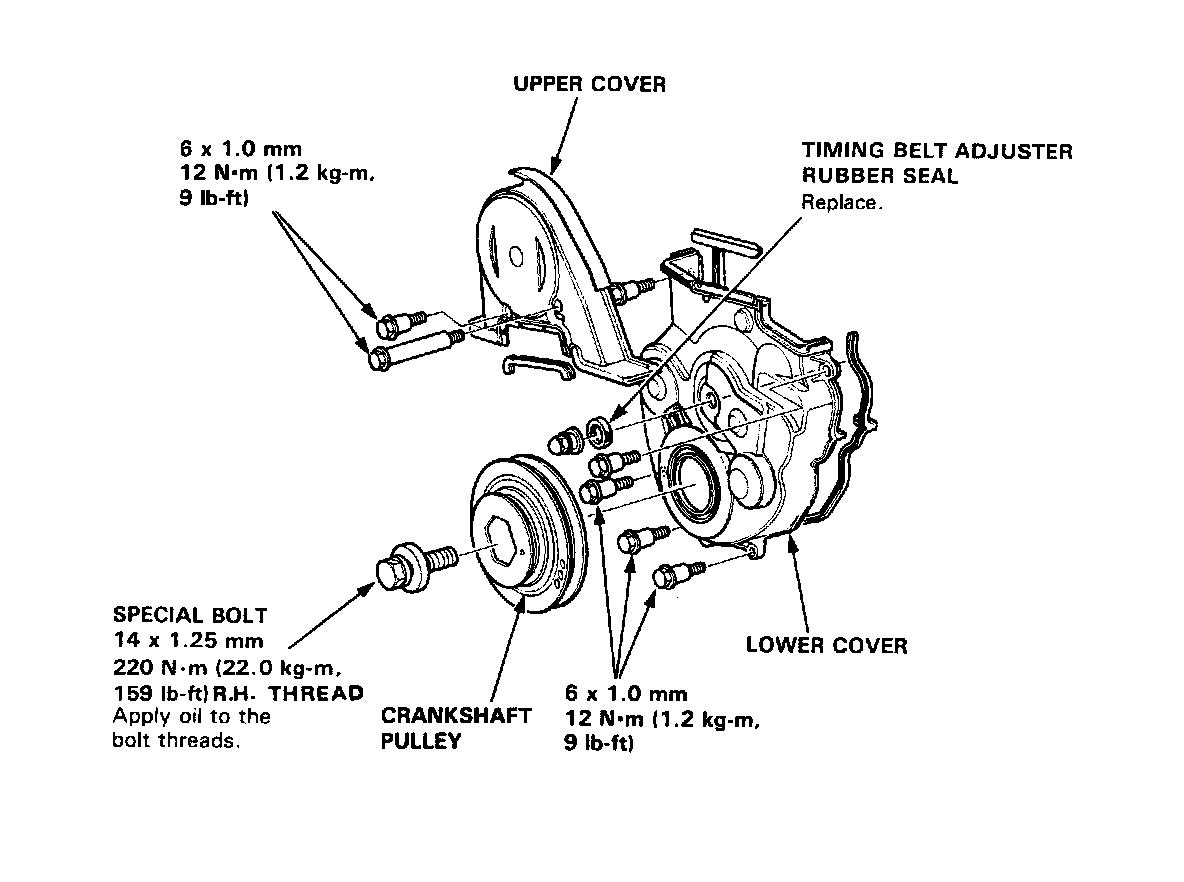 16. Coat the threads and seat face of the pulley bolt with engine oil, and tighten to the specified torque.