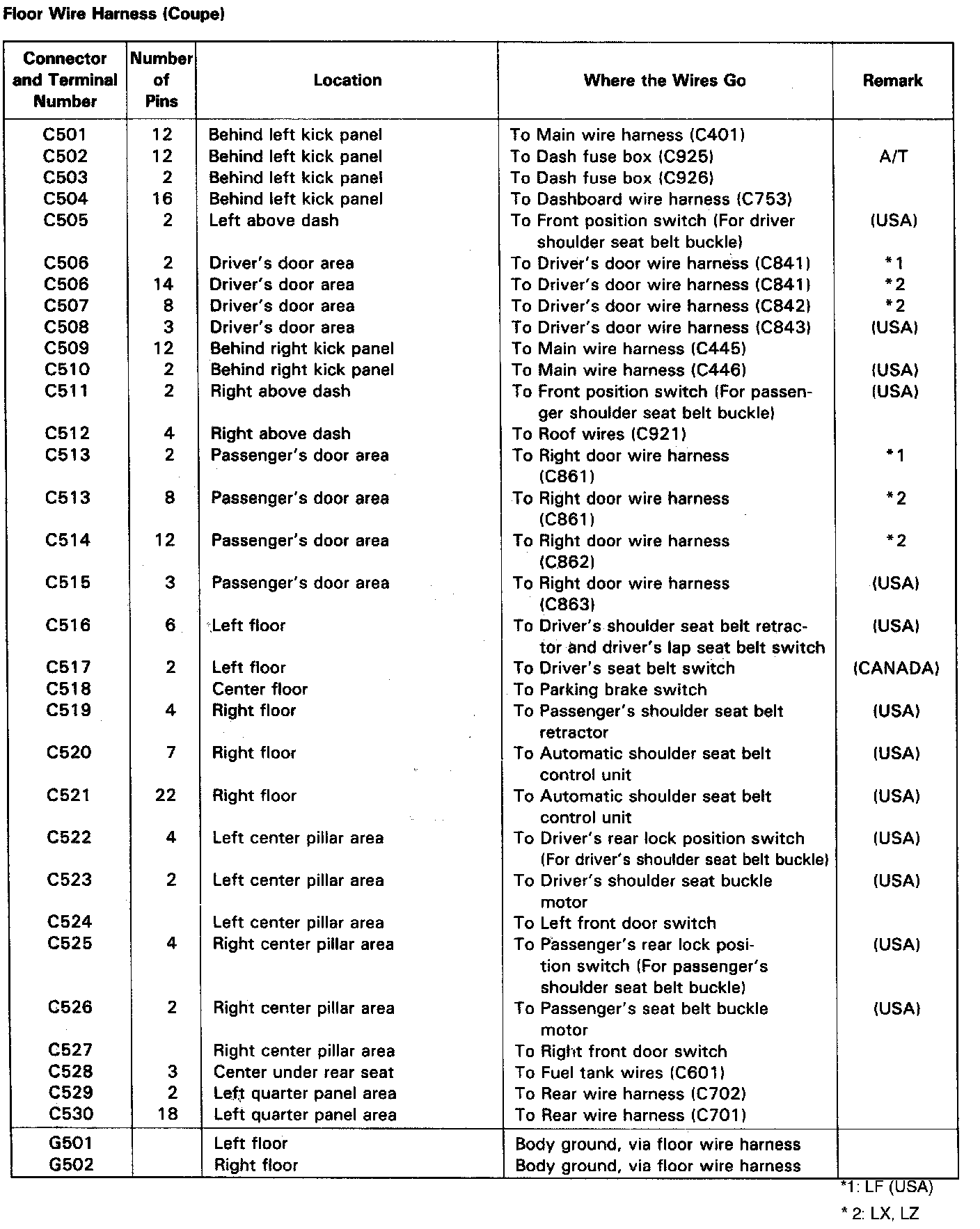 Floor Wiring Harness (Coupe)